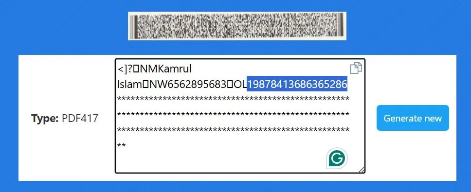 ধাপ ৩: Bar Code স্ক্যান শেষে কিছু Text দেখাবে। এখানেই আপনি খুঁজে পাবেন আপনার পুরাতন এনআইডি নম্বর। কিভাবে খুঁজে পাবেন?